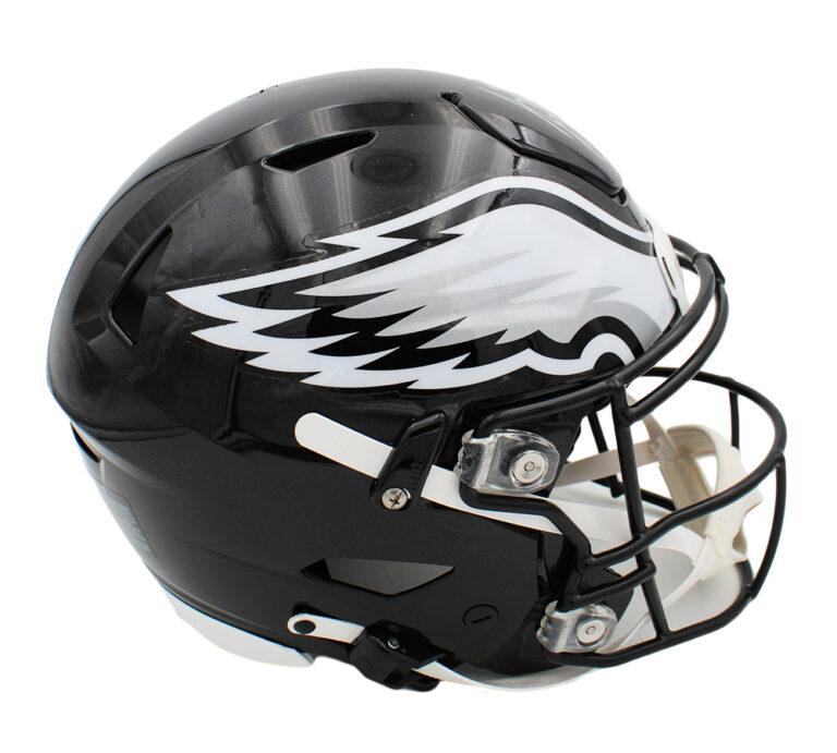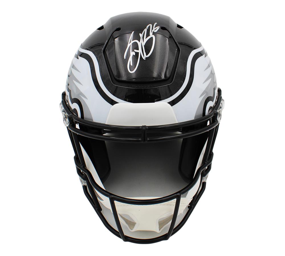 Riddell Philadelphia Eagles full-size authentic on-field alternate speedflex helmet has been hand-signed by Saquon Barkley.