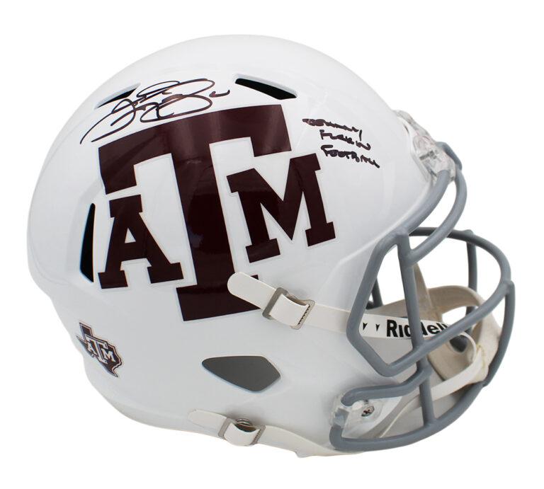 Riddell Texas A&M Aggies full-size speed replica helmet. Hand-signed and inscribed by Johnny Manziel.