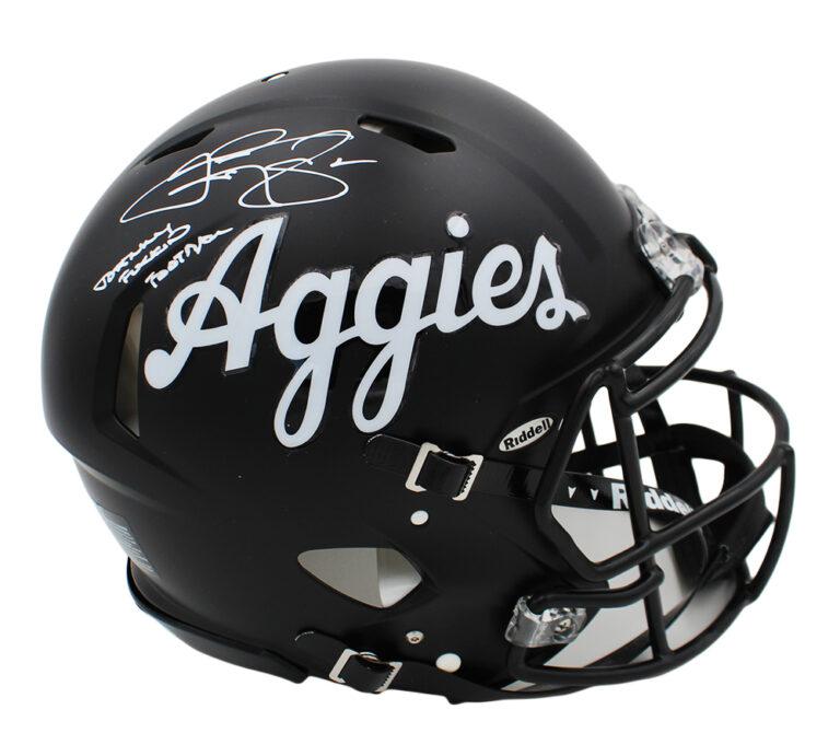 Riddell Texas A&M Aggies full-size authentic on-field speed helmet. Hand-signed and inscribed by Johnny Manziel.