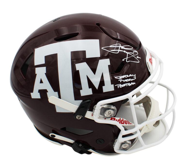 Riddell Texas A&M Aggies full-size authentic on-field speedflex helmet. Hand-signed and inscribed by Johnny Manziel.