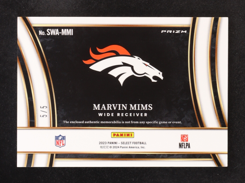 Marvin Mims 2023 Select Jumbo Rookie Swatch Prizm Green #32 #5/5 RC