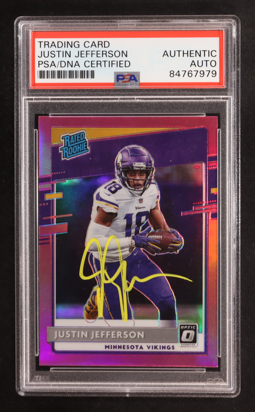Justin Jefferson Signed 2020 Donruss Optic Pink #163 RR RC (PSA)