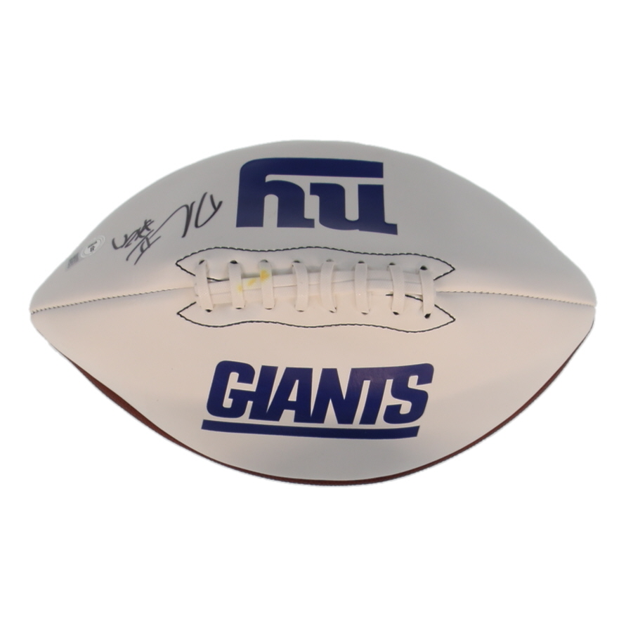 Franklin New York Giants Logo Football. Hand-signed by Dexter Lawrence. Please note, there are stains throughout the football and it does not hold air.