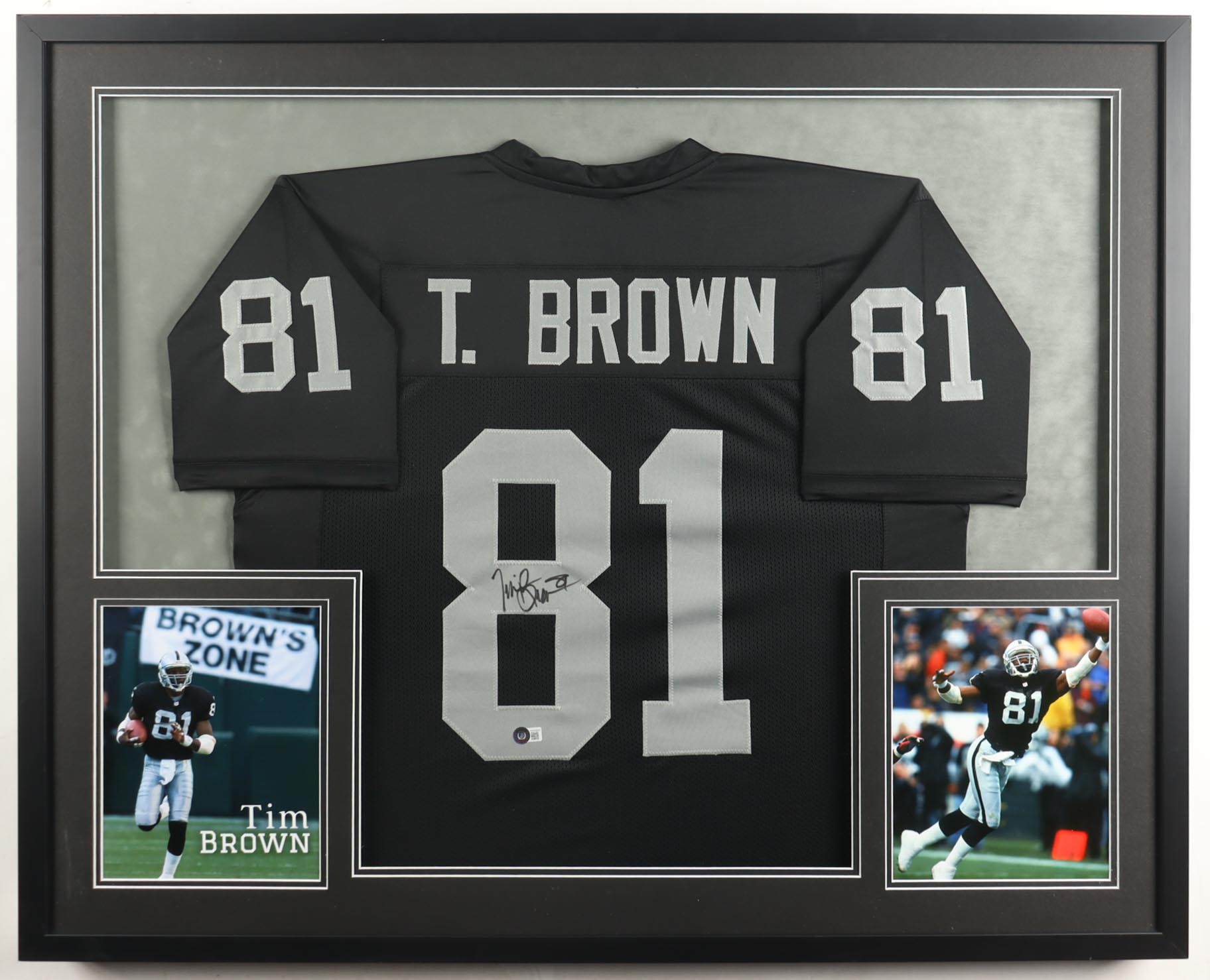 Tim Brown Signed Custom Framed Jersey (Beckett)