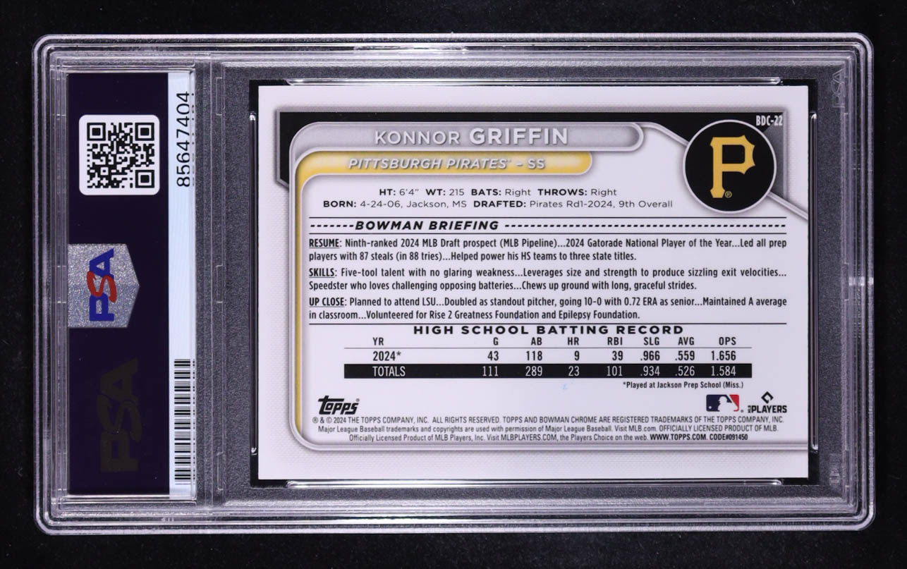 Konnor Griffin Signed 2024 Bowman Chrome Draft #BDC22 (PSA | Auto Grade 10)