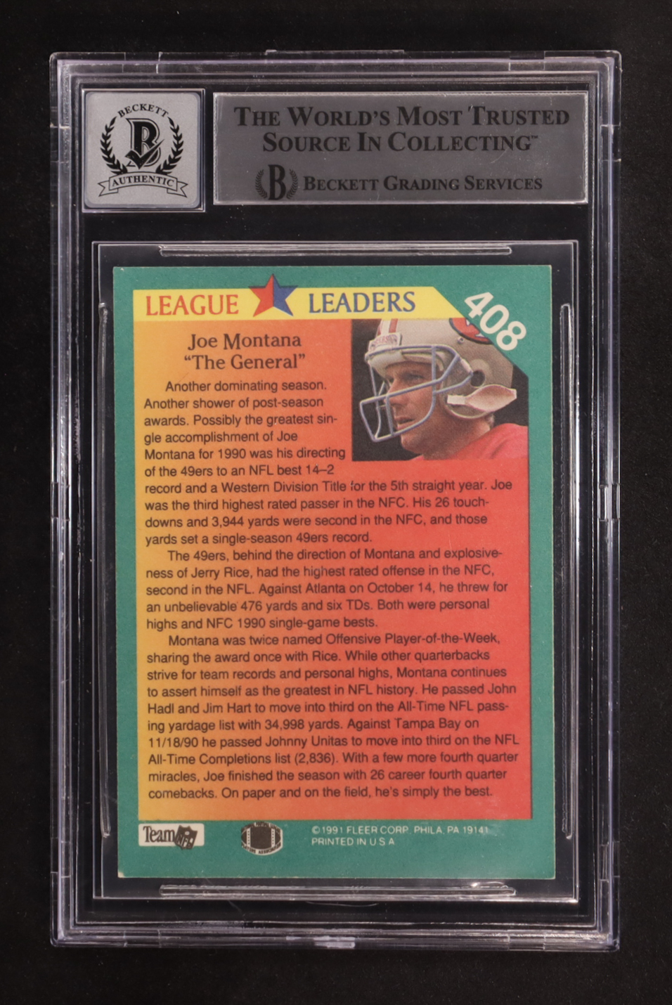 Joe Montana Signed 1991 Fleer #408 LL (BGS | Auto 10)