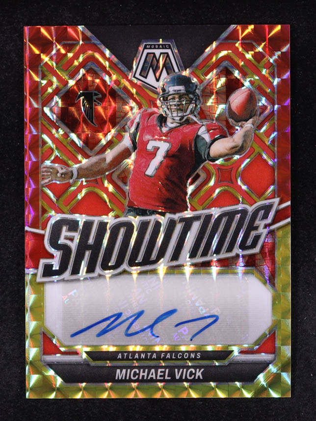 Michael Vick 2024 Panini Mosaic Showtime Signatures Choice Fusion Red and Yellow #15
