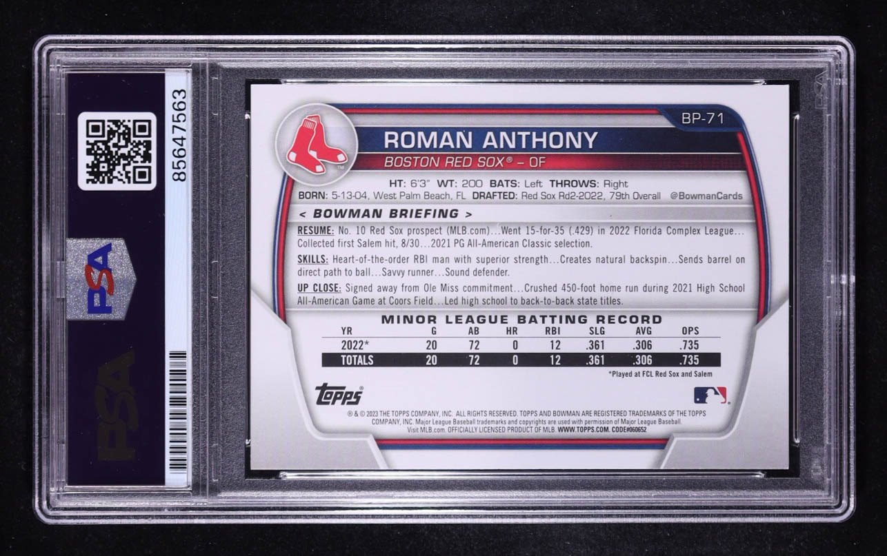 Roman Anthony Signed 2023 Bowman Prospects #BP71 RC (PSA | Auto 10)