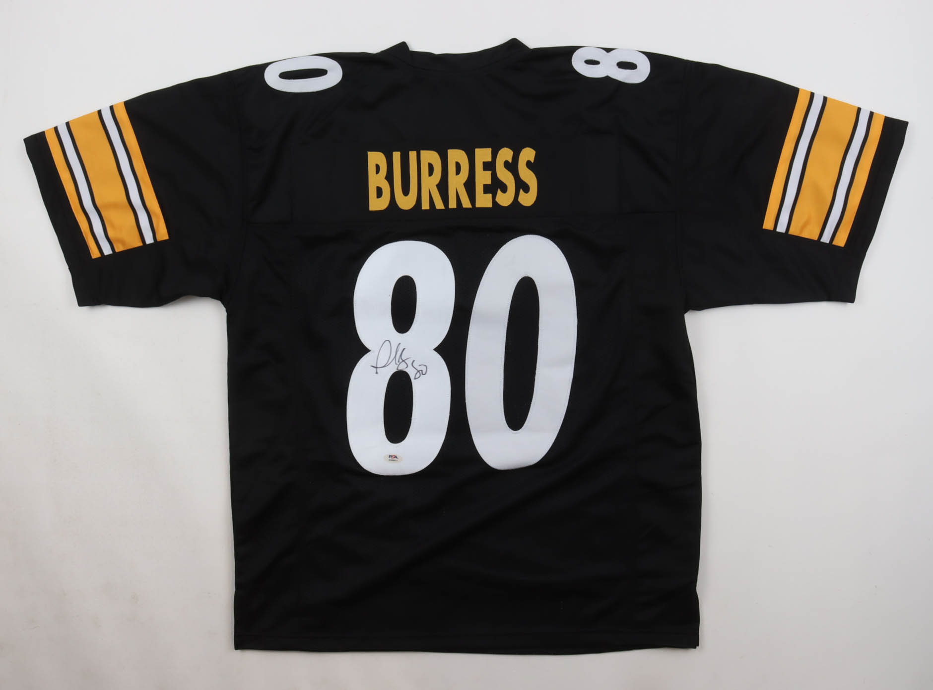 Custom jersey with everything sewn on, size XL. Hand-signed by Plaxico Burress.