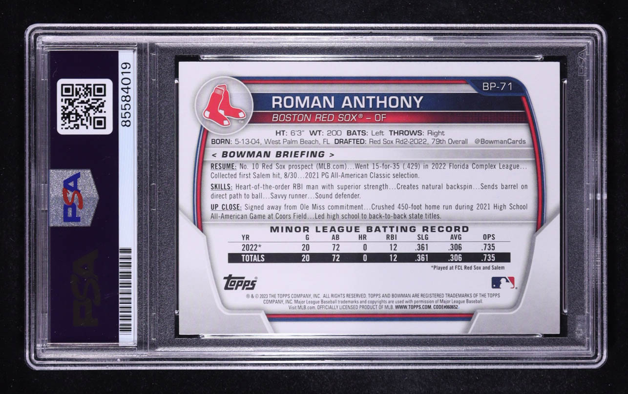Roman Anthony Signed 2023 Bowman Prospects #BP71 RC (PSA)