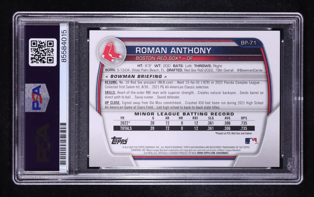 Roman Anthony Signed 2023 Bowman Prospects #BP71 RC (PSA)