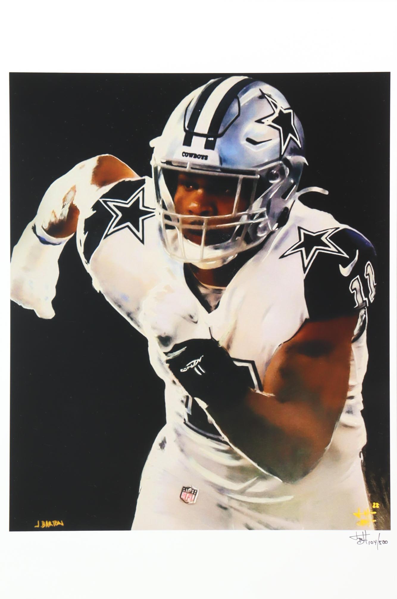 This limited edition giclee on high-quality matte fine art smooth 230gsm paper measures approximately 12" x 18" in size. The piece is hand-signed and numbered by the artist, Joshua Barton and features Micah Parsons (Dallas Cowboys).