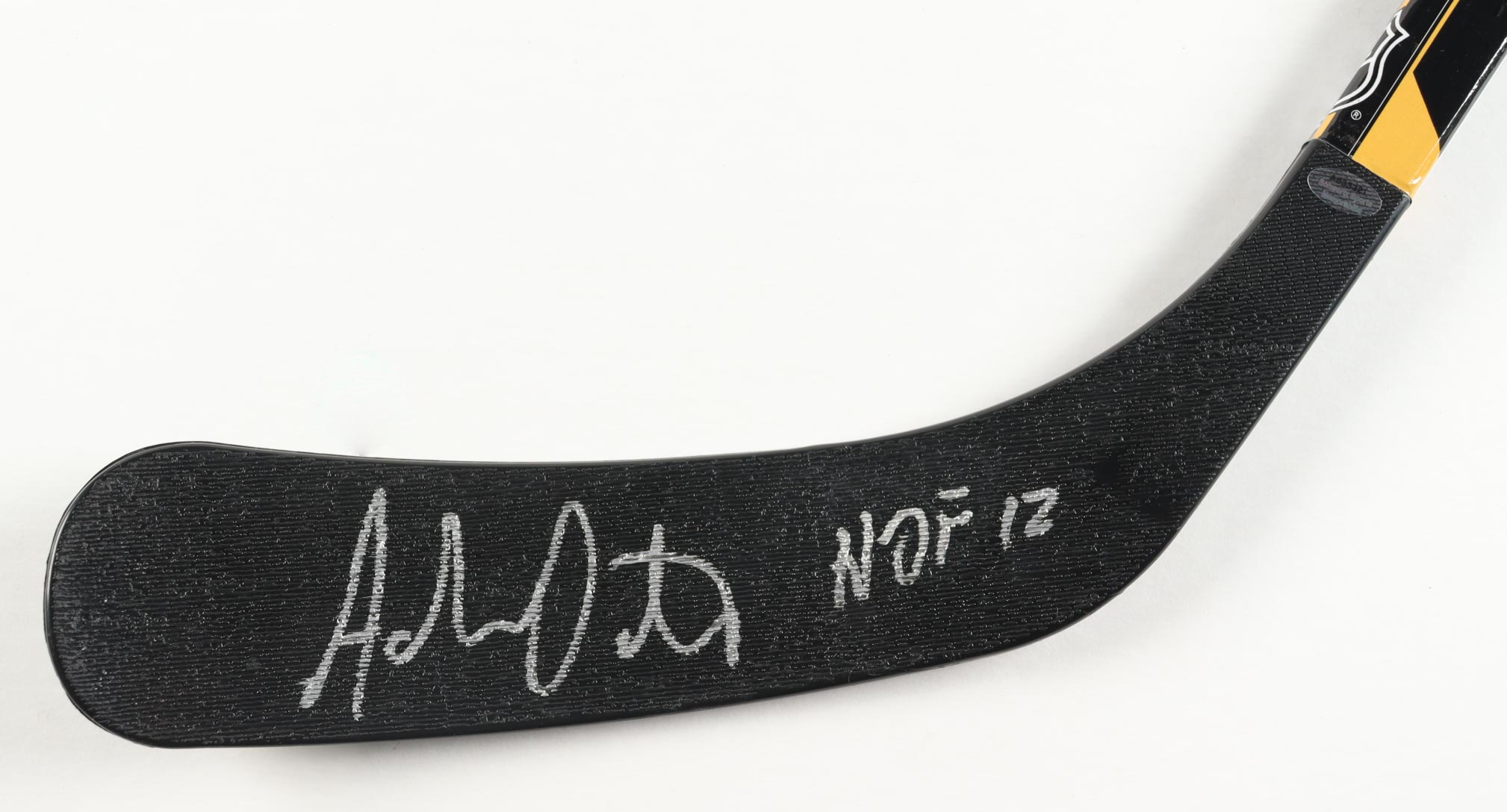 Franklin Boston Bruins 48" hockey stick has been hand-signed and inscribed by Adam Oates (HOF).