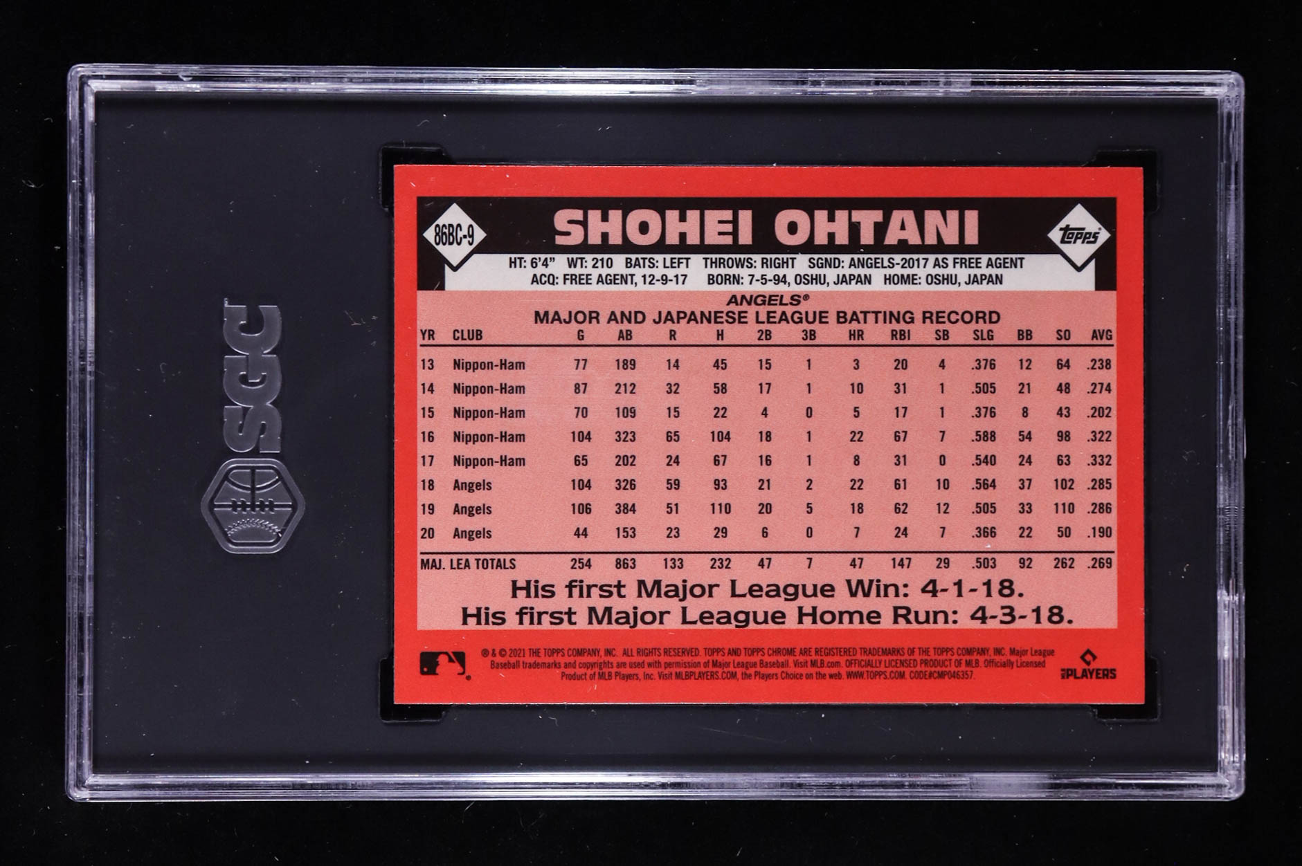 Shohei Ohtani 2021 Topps Chrome '86 Topps #86BC9 (SGC 9.5)