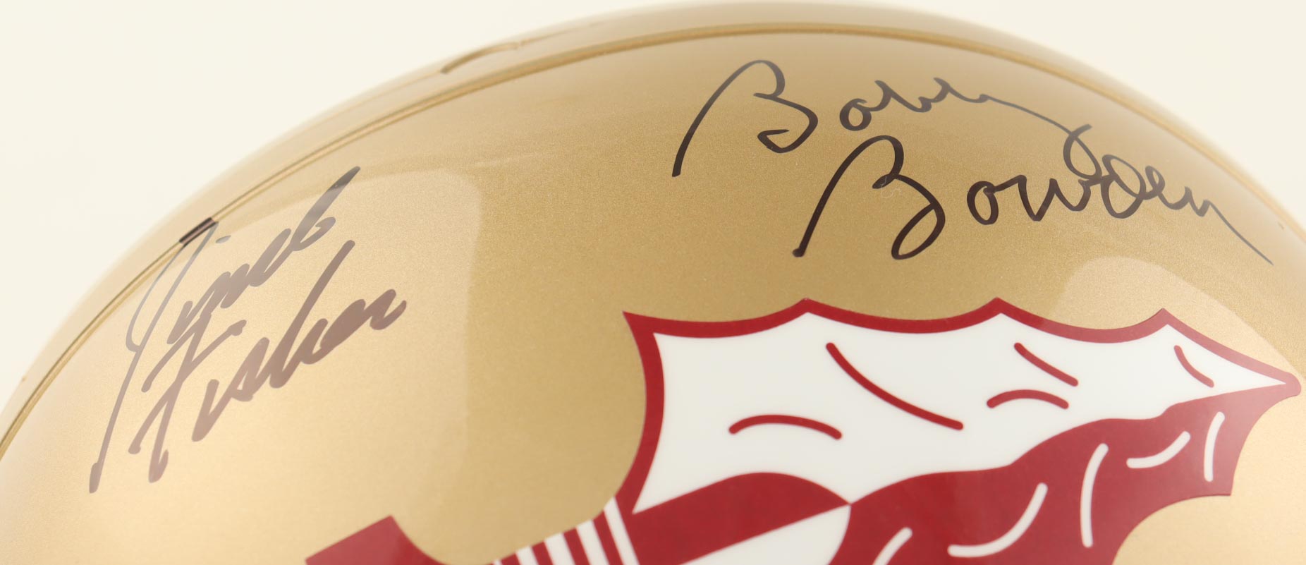 Riddell Florida State Seminoles full-size replica helmet. Hand-signed by Bobby Bowden (D. 2021) and Jimbo Fisher.