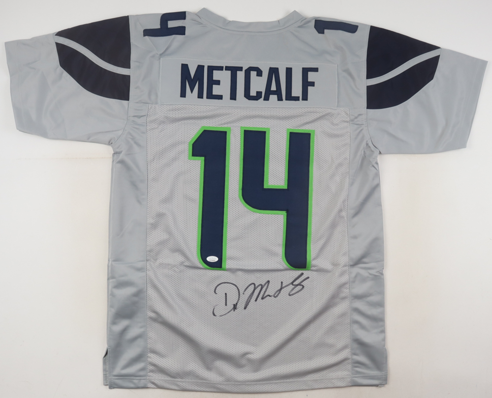 Custom jersey. Everything is sewn on, size XL. Hand-signed by DK Metcalf.