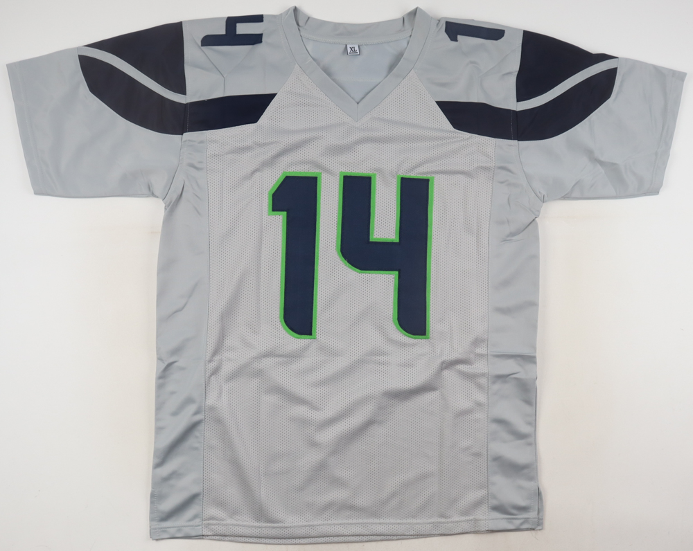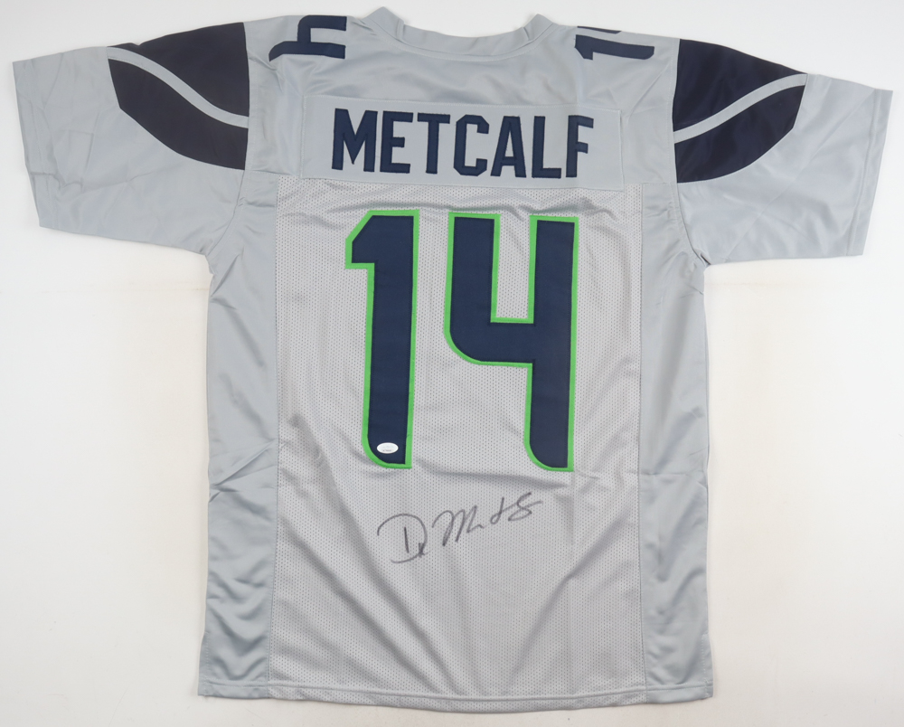 Custom jersey. Everything is sewn on, size XL. Hand-signed by DK Metcalf.
