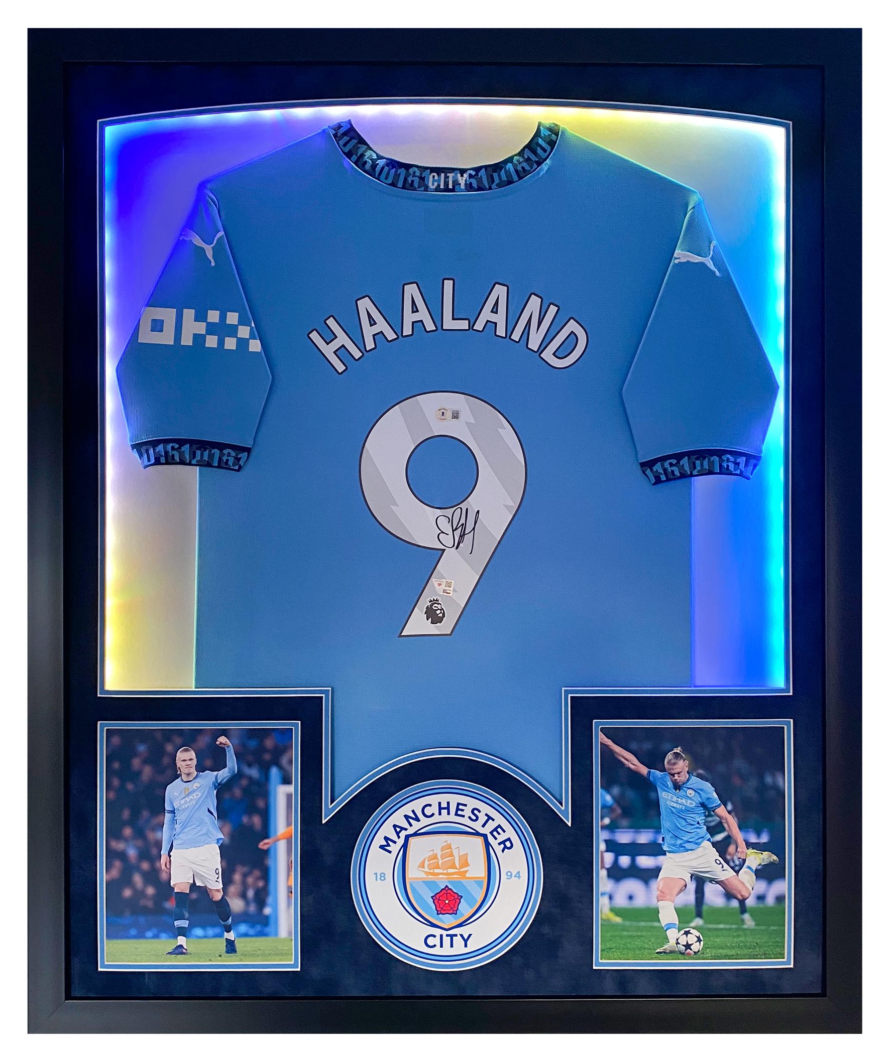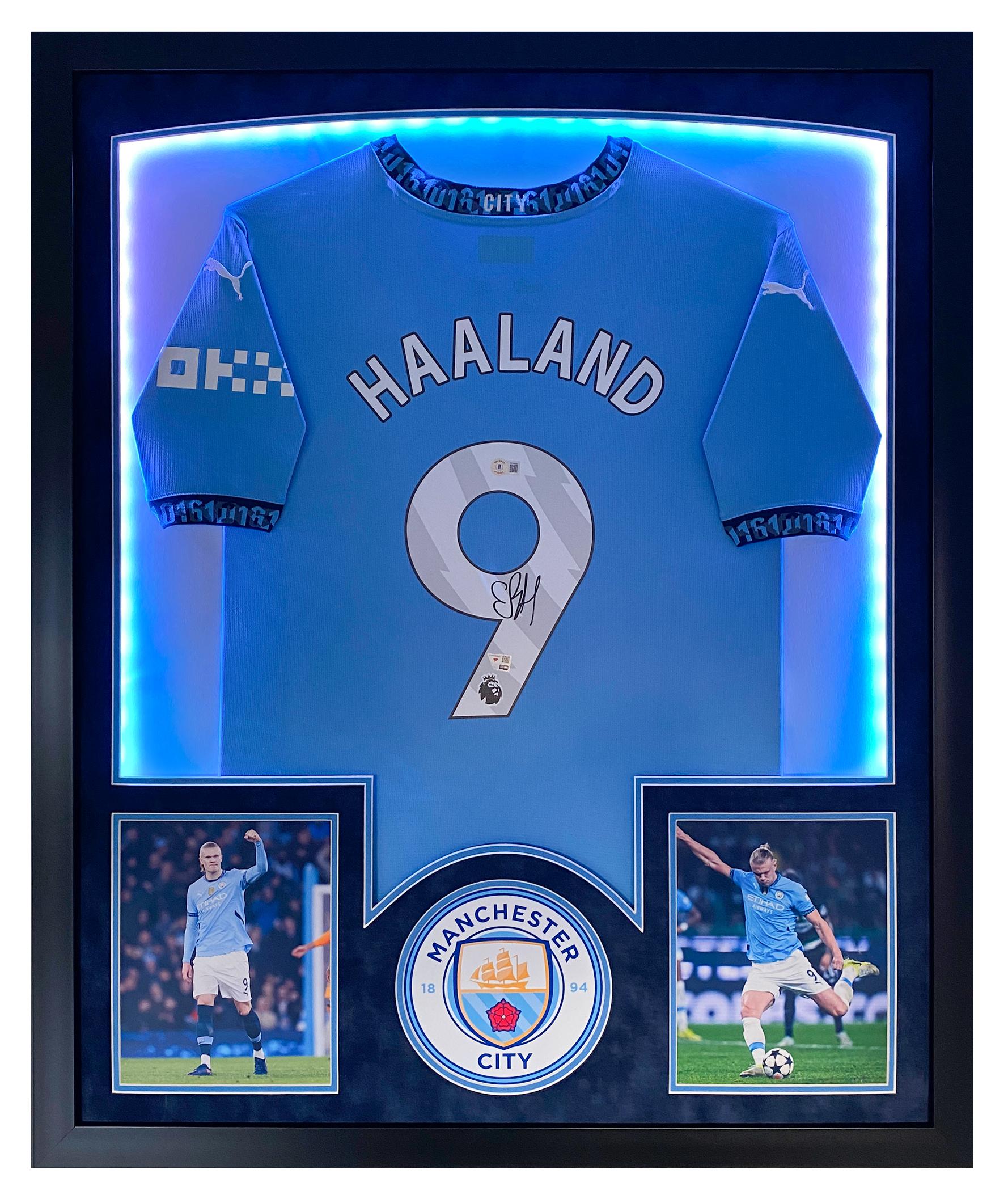 Erling Haaland Signed Manchester City Custom Framed LED Jersey Display (Fanatics)