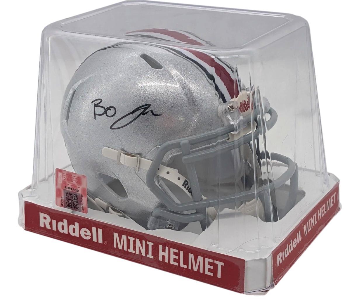 Riddell Ohio State Buckeyes Speed mini helmet has been hand-signed by Bo Jackson (Ohio State Buckeyes).