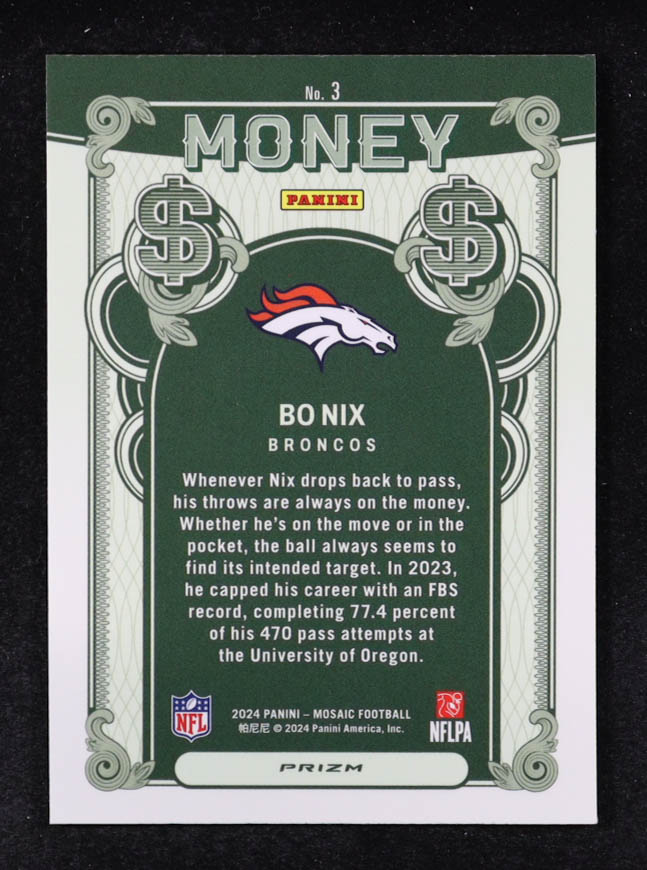 Bo Nix 2024 Panini Mosaic Money #3 RC