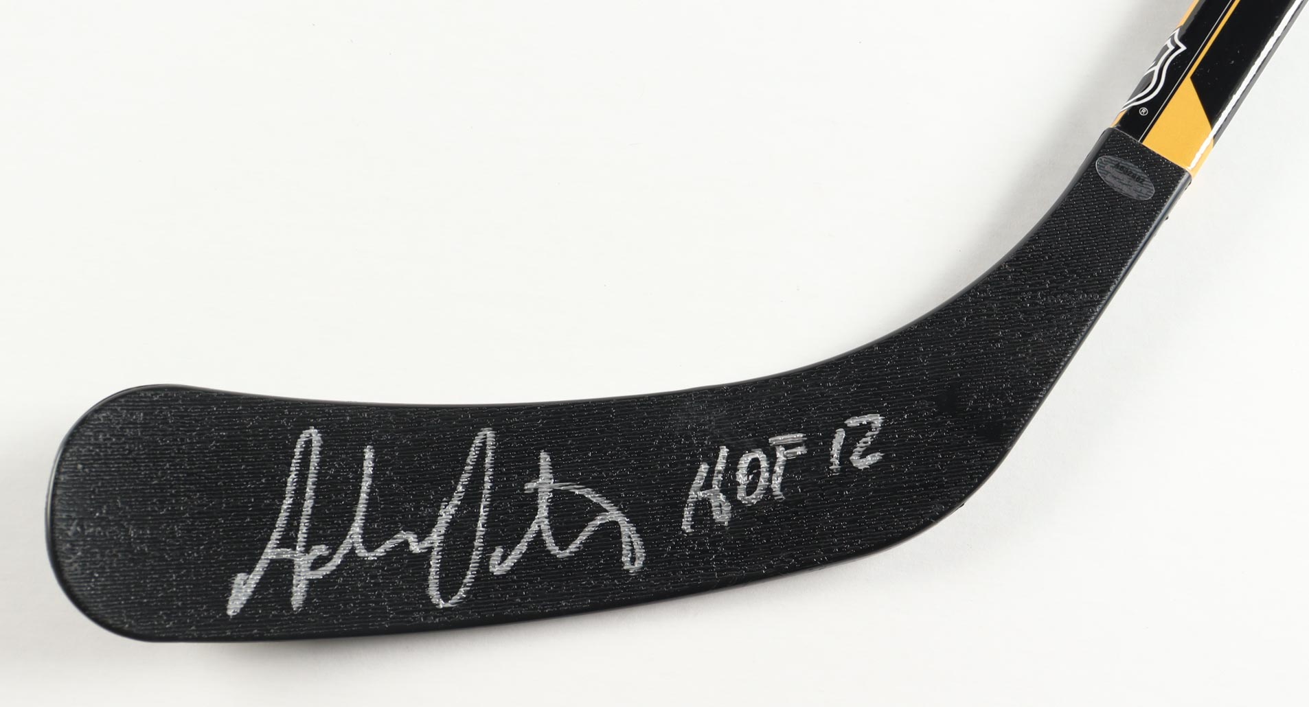 Franklin Boston Bruins 48" hockey stick has been hand-signed and inscribed by Adam Oates (HOF).