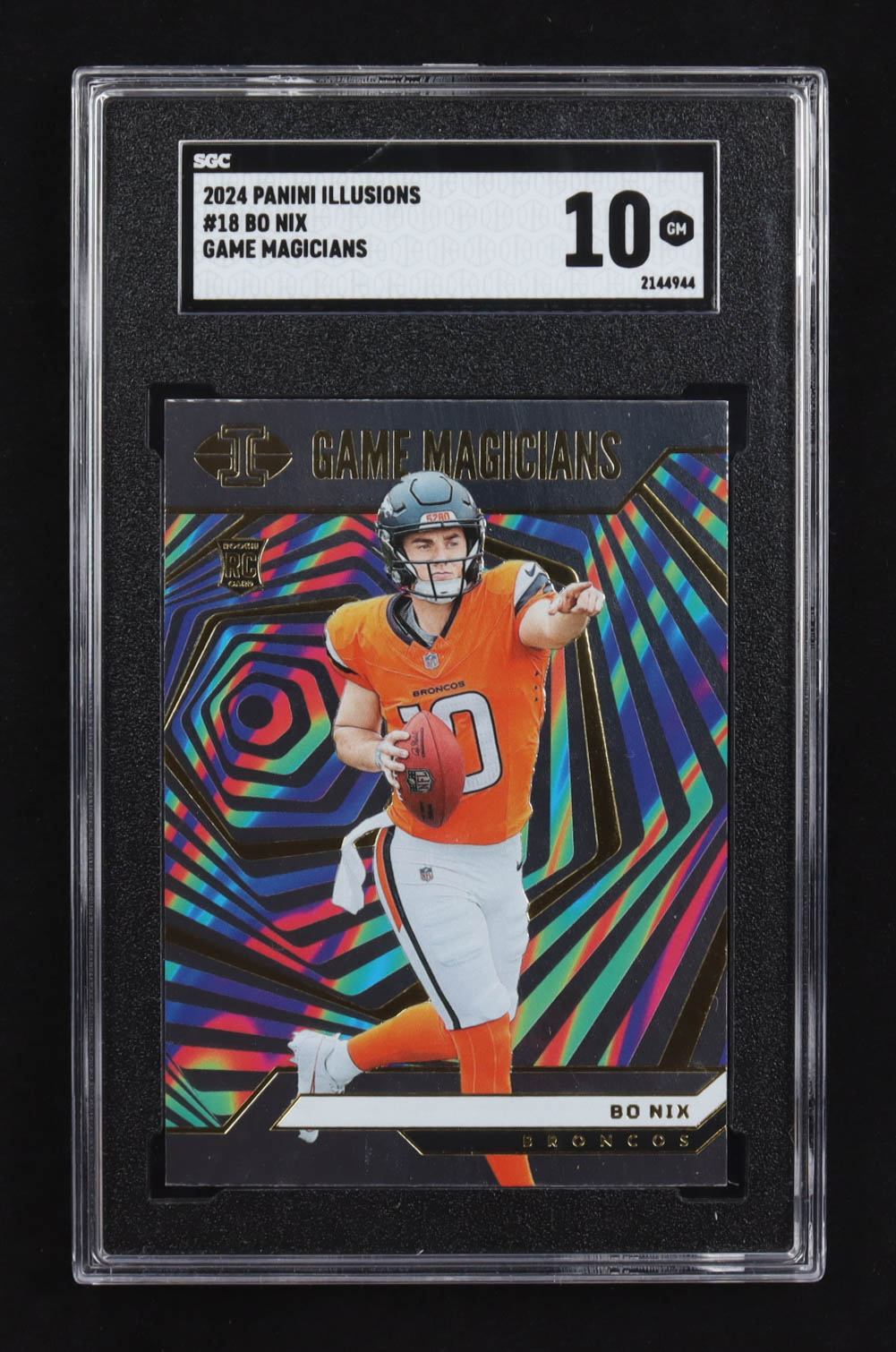 Bo Nix 2024 Panini Illusions Game Magicians #18 RC (SGC 10)