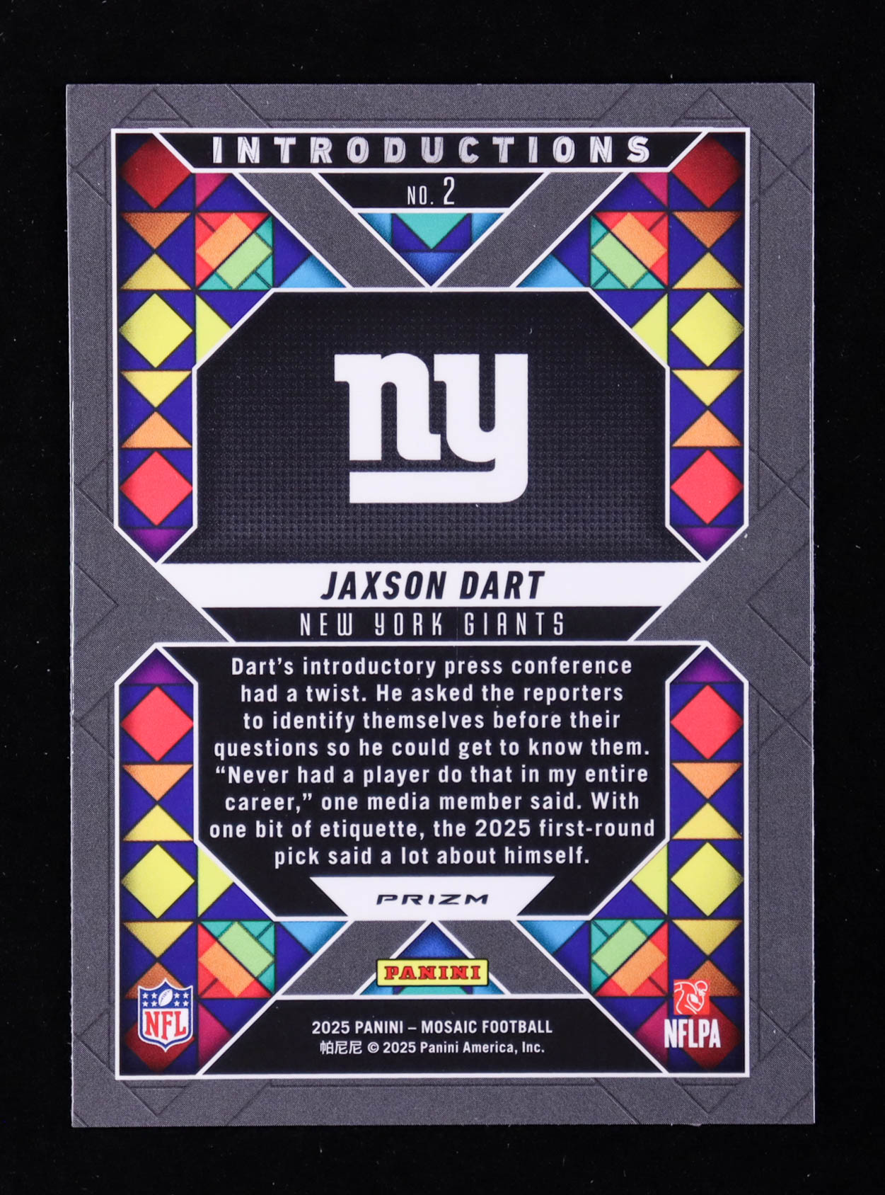 Jaxson Dart 2025 Panini Mosaic Introductions Silver #2 RC