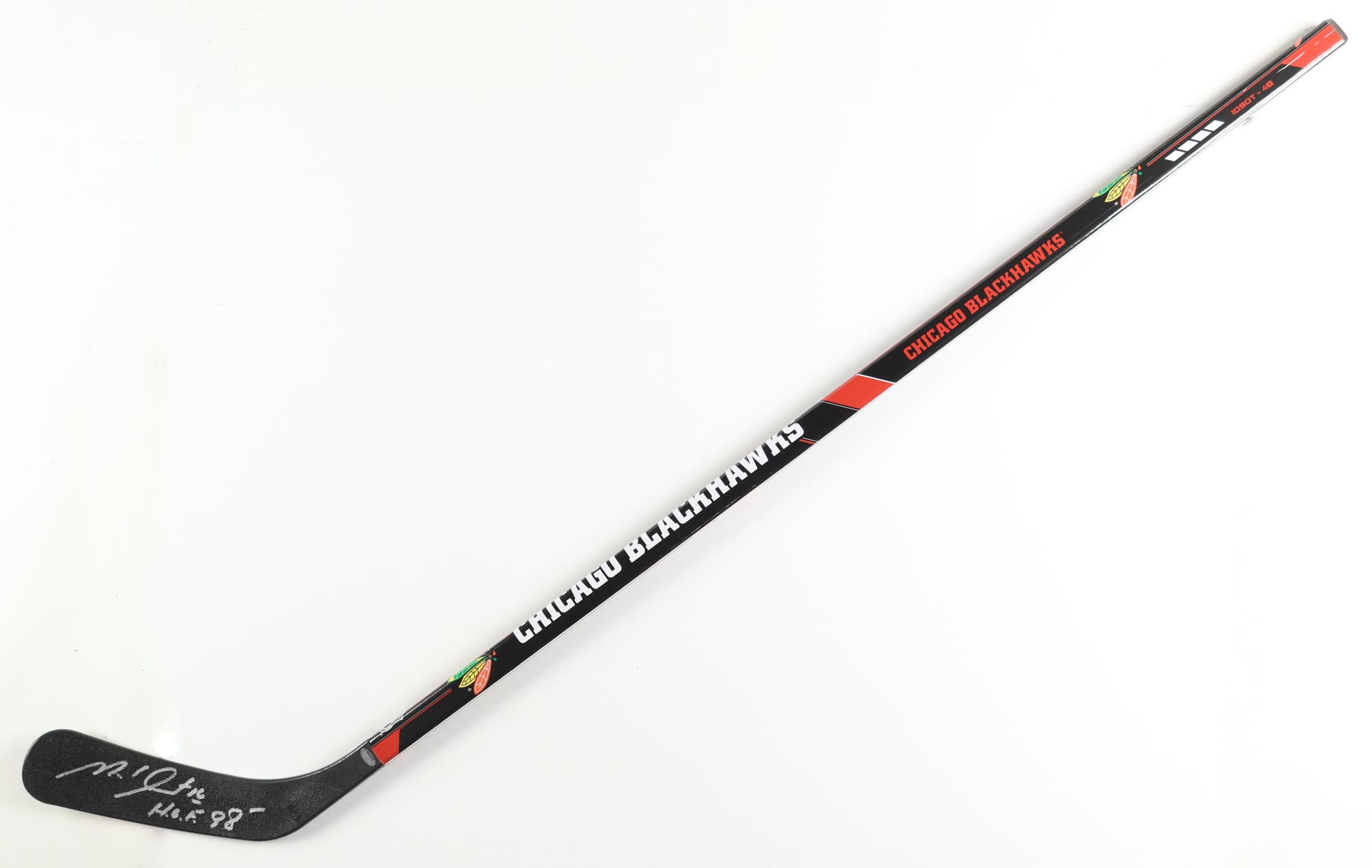 Michel Goulet Signed Blackhawks Hockey Stick Inscribed "HOF 98" (Schwartz)