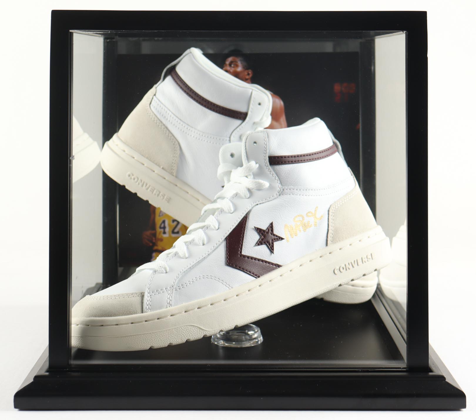 Set of (2) Converse All-Star Leather Basketball Shoes have been hand-signed by Magic Johnson (Los Angeles Lakers, HOF). Please note that the display case is included in the listing as shown above.
