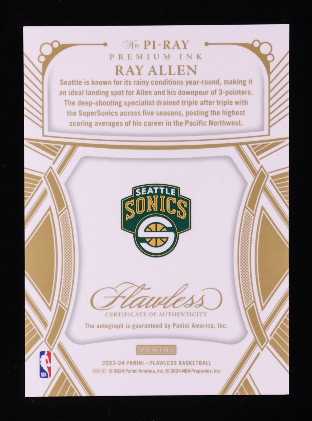Ray Allen 2023-24 Panini Flawless Premium Ink #2 #07/25
