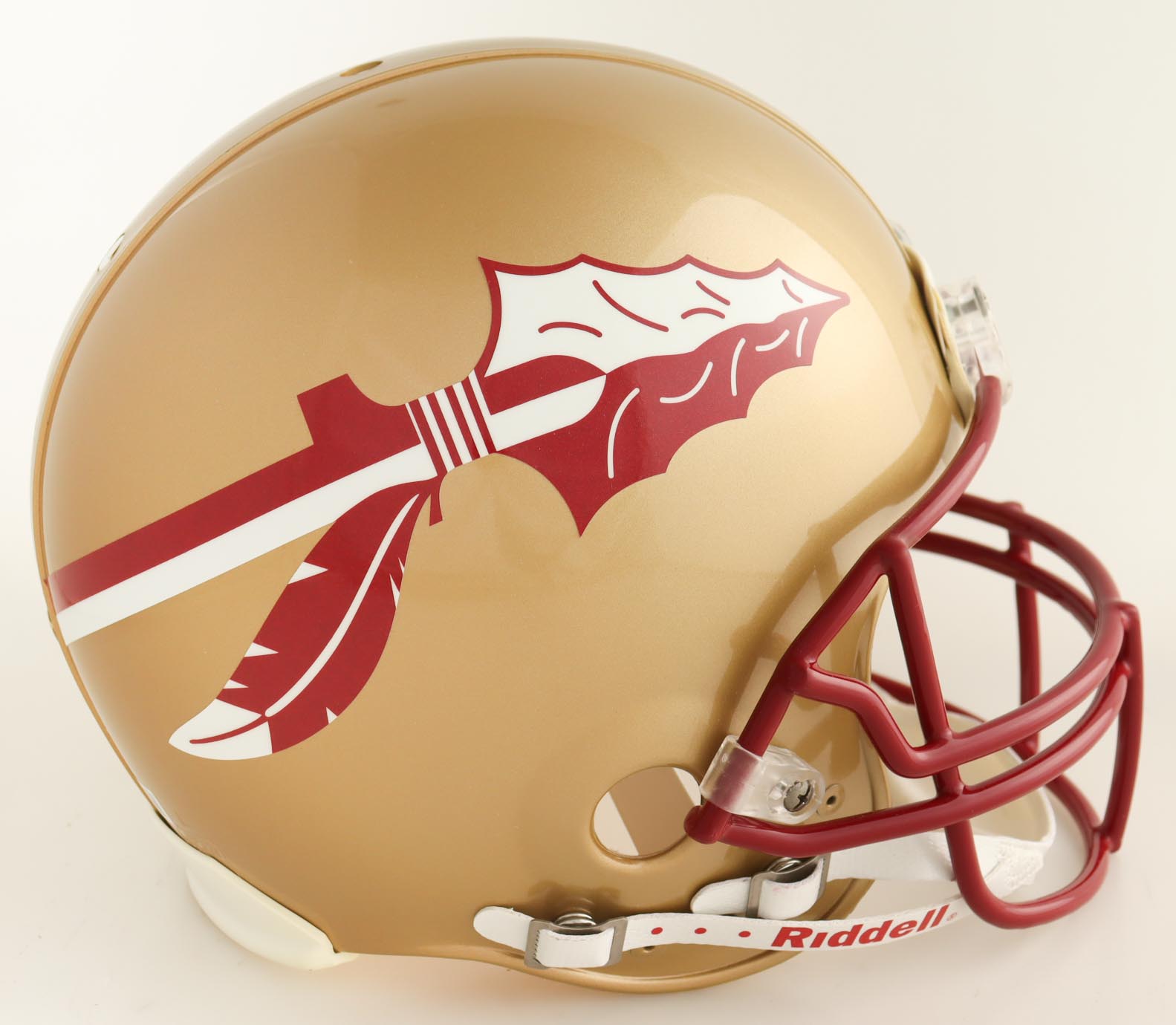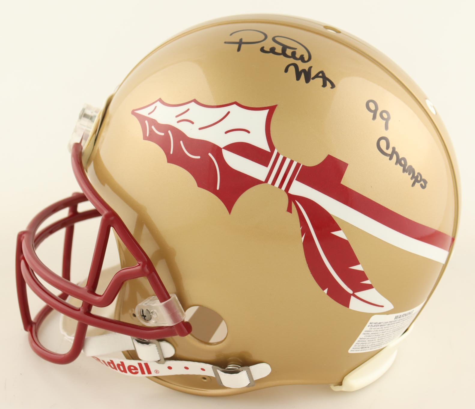 Riddell Florida State Seminoles full-size authentic on-field helmet. Hand-signed and inscribed by Peter Warrick.