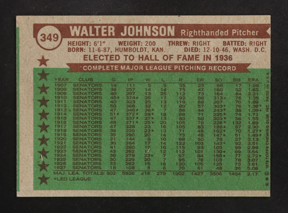 Walter Johnson 1976 Topps ATG #349
