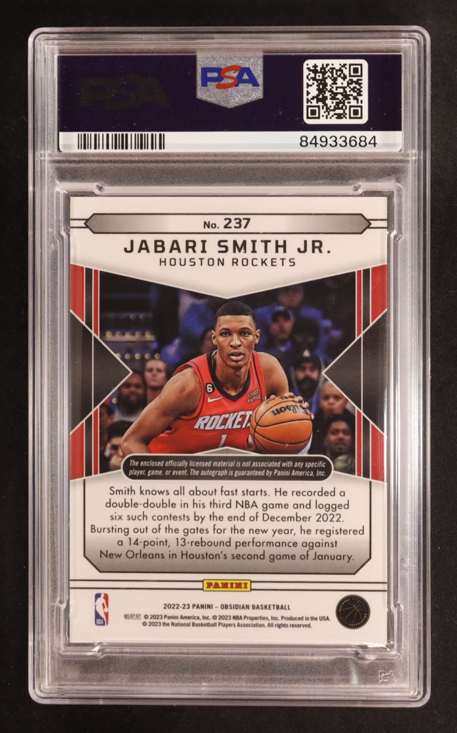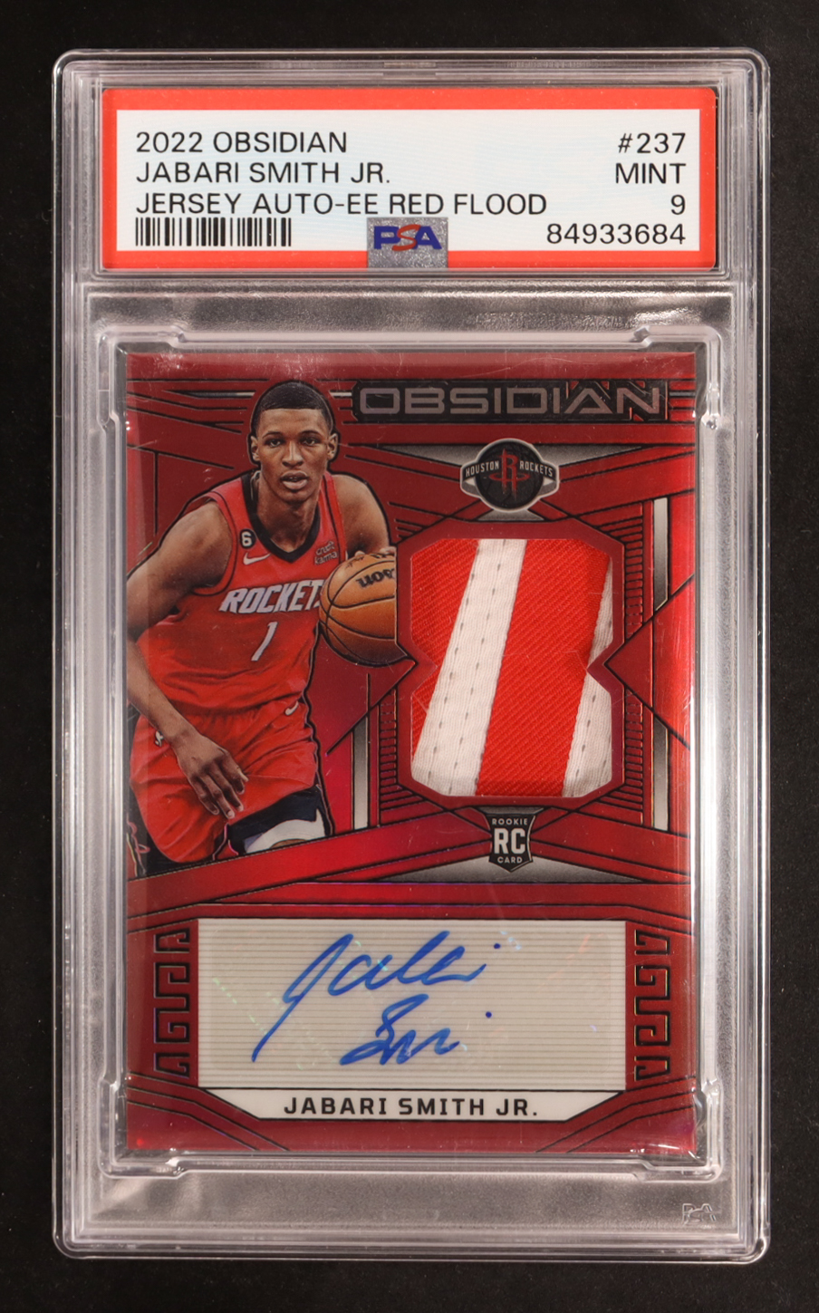 Jabari Smith Jr. 2022-23 Panini Obsidian Electric Etch Red Flood #237 Autograph Jersey RC (PSA 9)