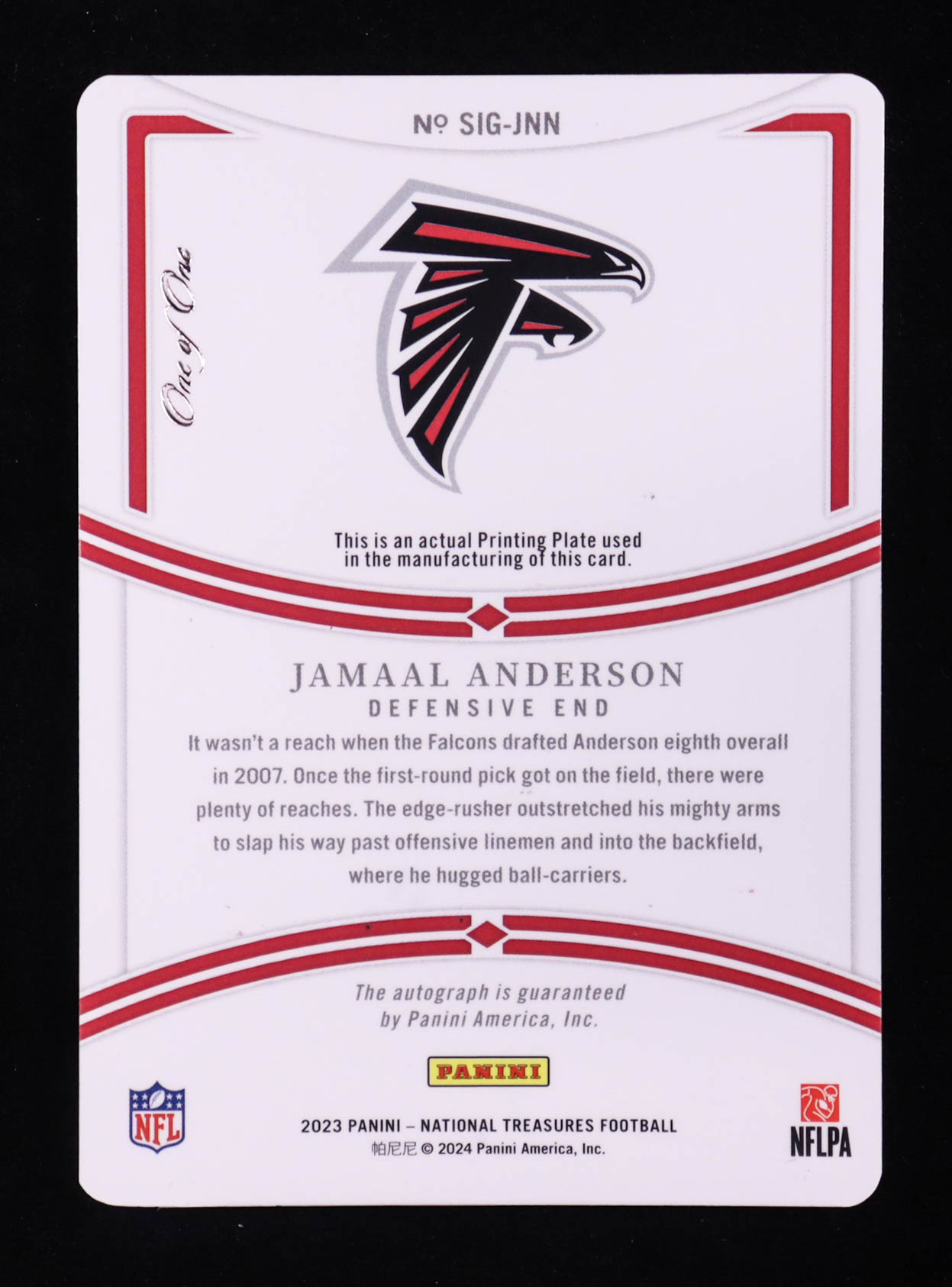 Jamaal Anderson 2023 Panini National Treasures Signatures Printing Plates Black #3 #1/1