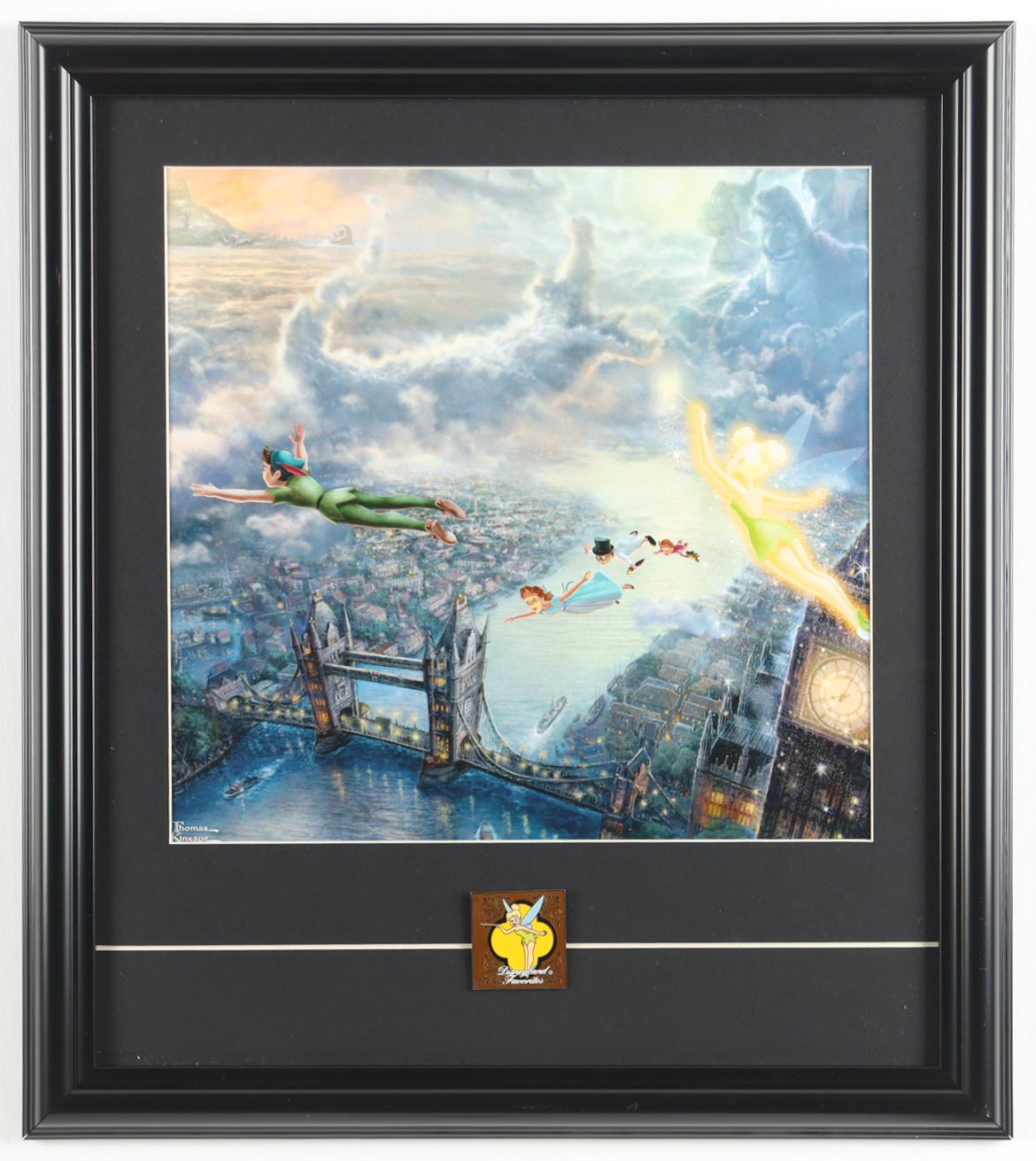 Thomas Kinkade Walt Disney's "Peter Pan" Custom Framed Print Display with Tinker Bell Pin
