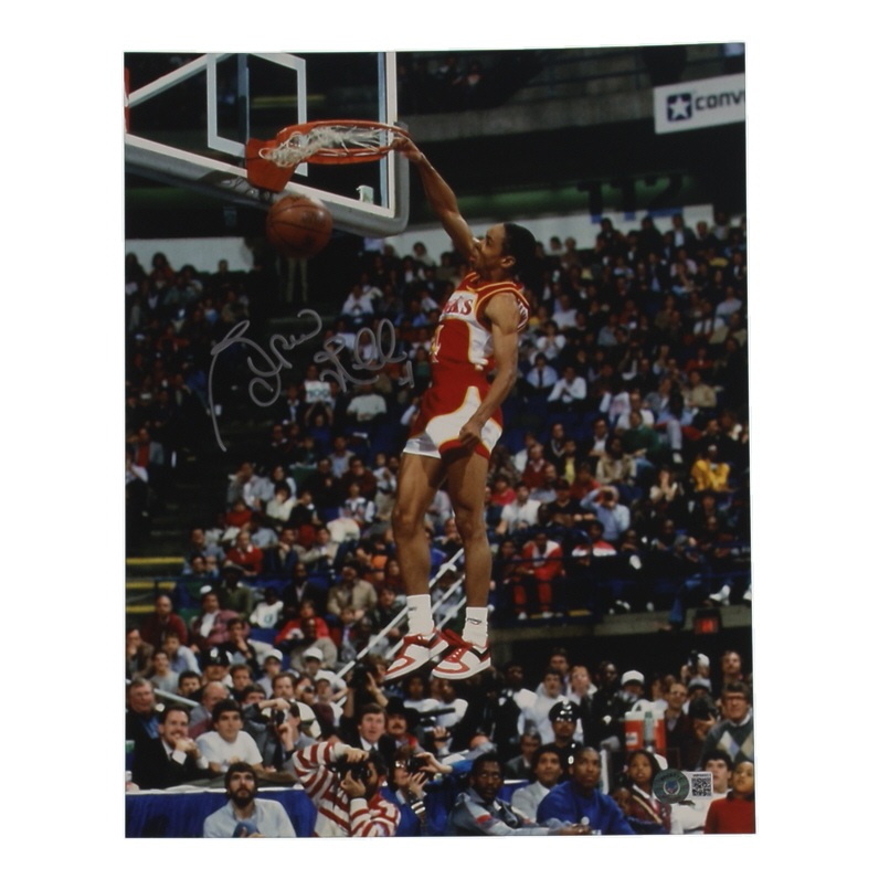 Photo measures 11" x 14" in size and has been hand-signed by Spud Webb (Atlanta Hawks).