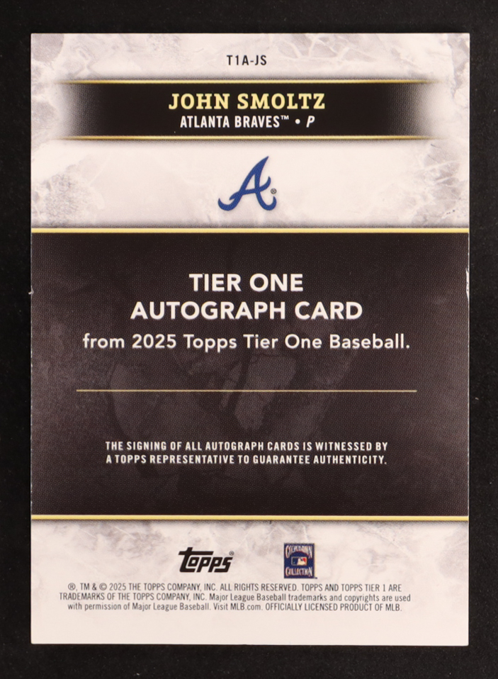 John Smoltz 2025 Topps Tier One Tier One Autographs Blue Foil #T1AJS #47/49