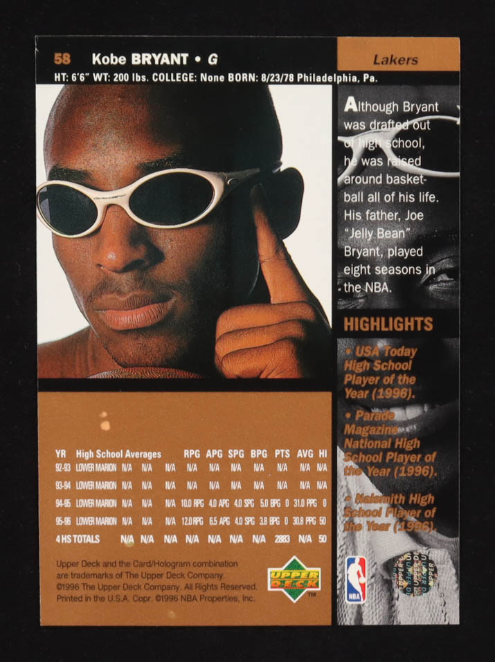 Kobe Bryant 1996-97 Upper Deck #58 RC