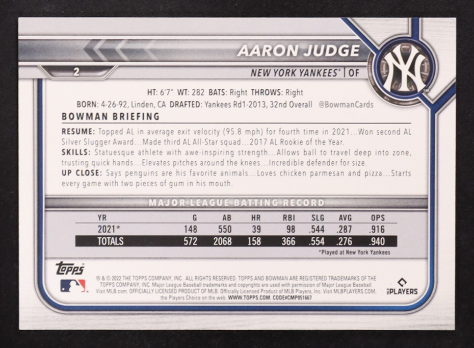 Aaron Judge 2022 Bowman Neon Green #2 #006/399