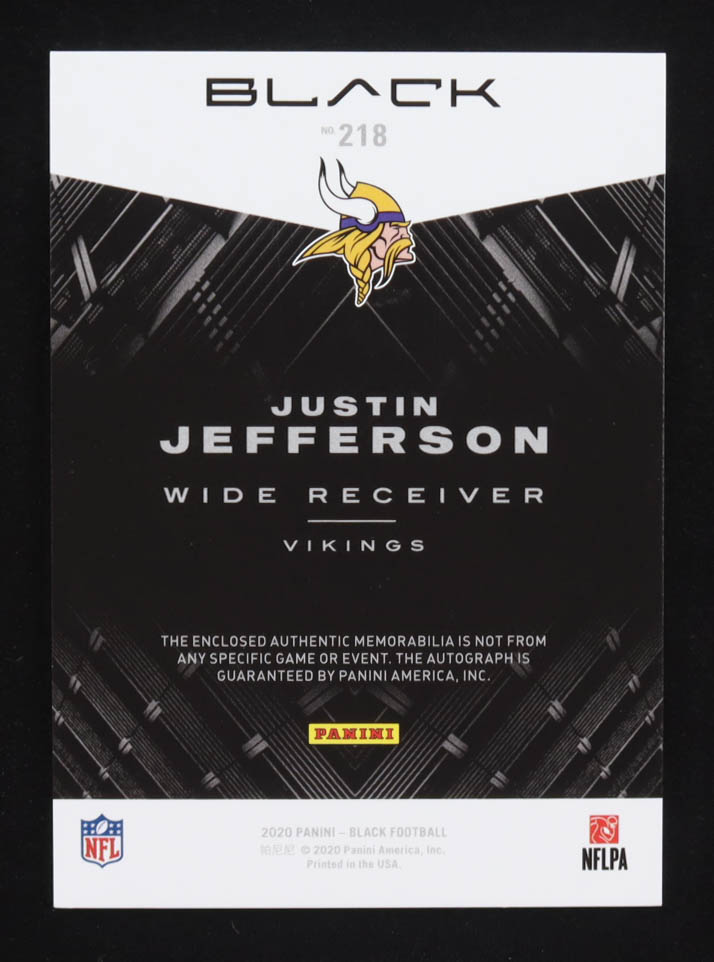 Justin Jefferson 2020 Panini Black #218 Jersey Autograph RC #3/199