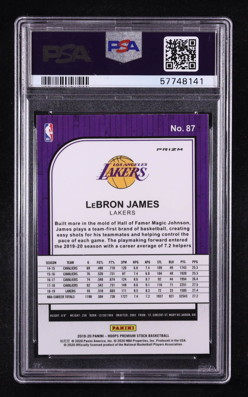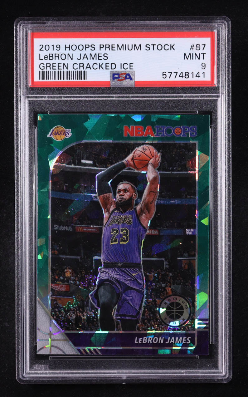LeBron James 2019-20 Hoops Premium Stock Prizms Green Cracked Ice #87 (PSA 9)