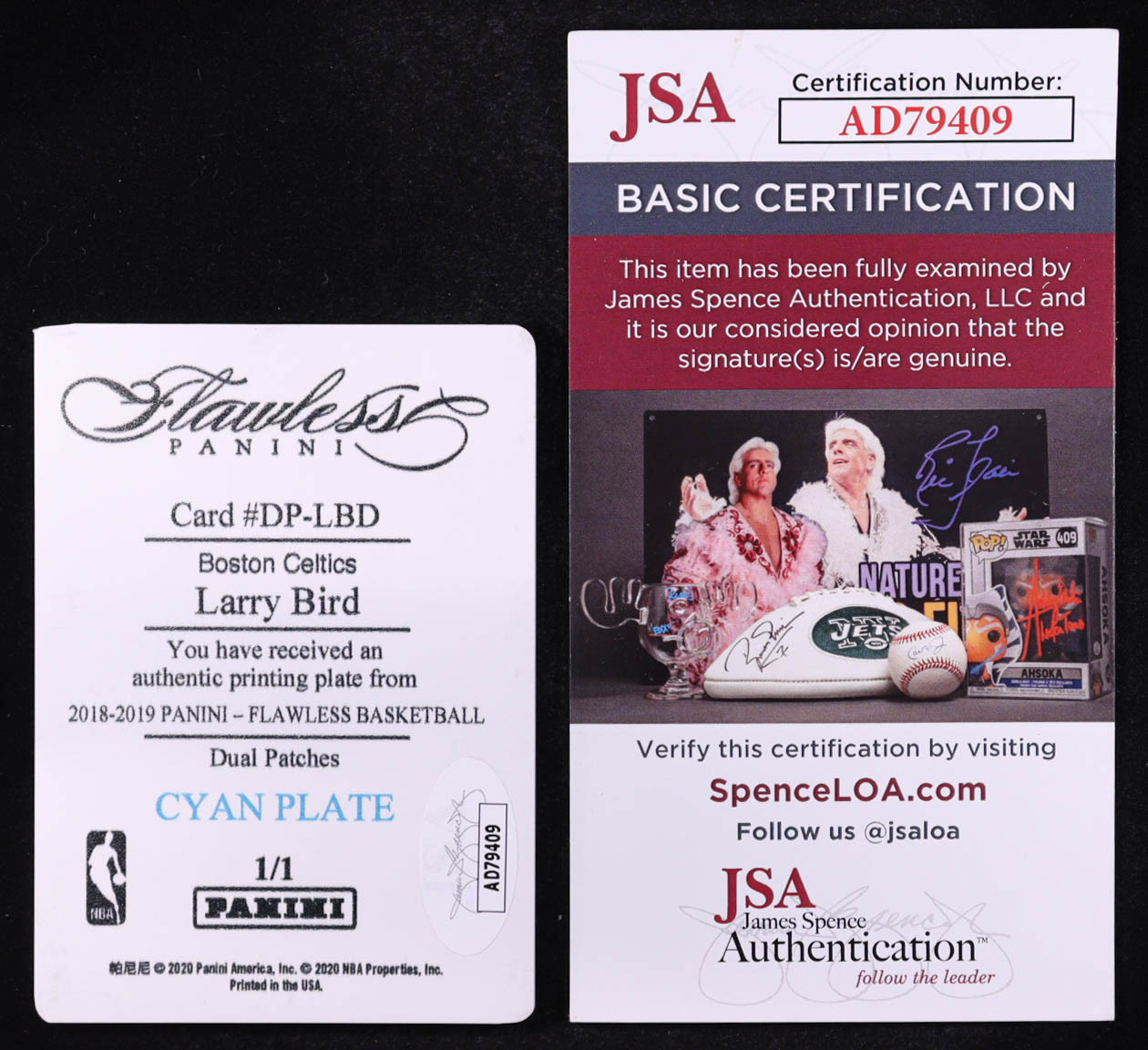 Larry Bird 2018-19 Panini Flawless Dual Patches Cyan Plate #DP-LBD #1/1