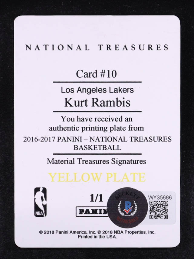 Kurt Rambis 2016-17 Panini National Treasures Yellow Plate Material Treasures Signatures #10 #1/1