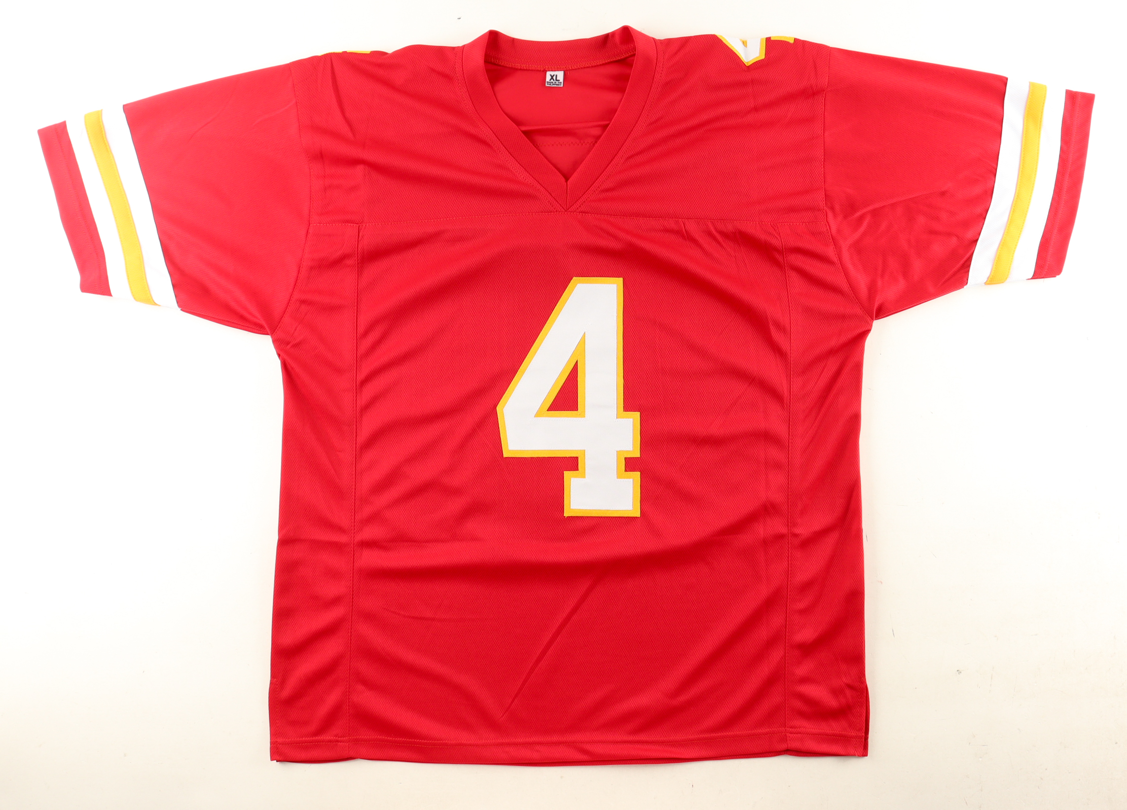 Custom jersey with everything sewn on, size XL. Hand-signed by Rashee Rice.