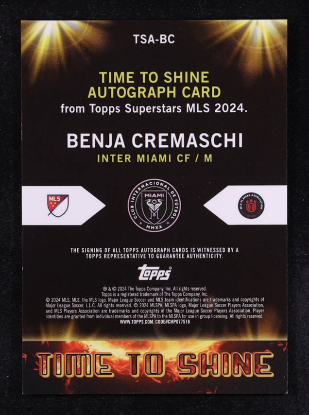 Benja Cremaschi 2024 Topps Time To Shine MLS Superstars Autographs #TSA-BC #1/1