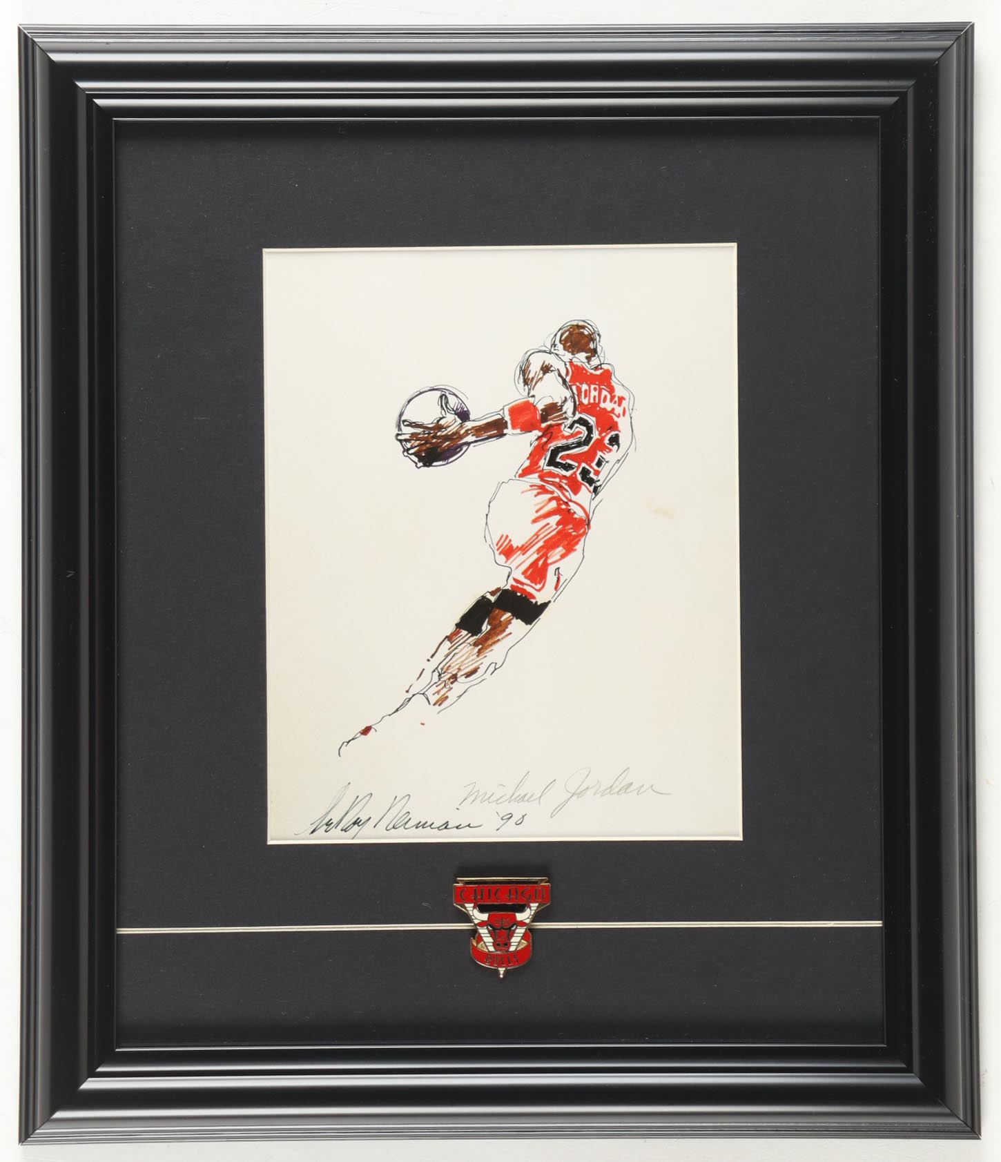 "Michael Air Jordan" Custom Framed Neiman Art Print Display with Bulls Logo Pin