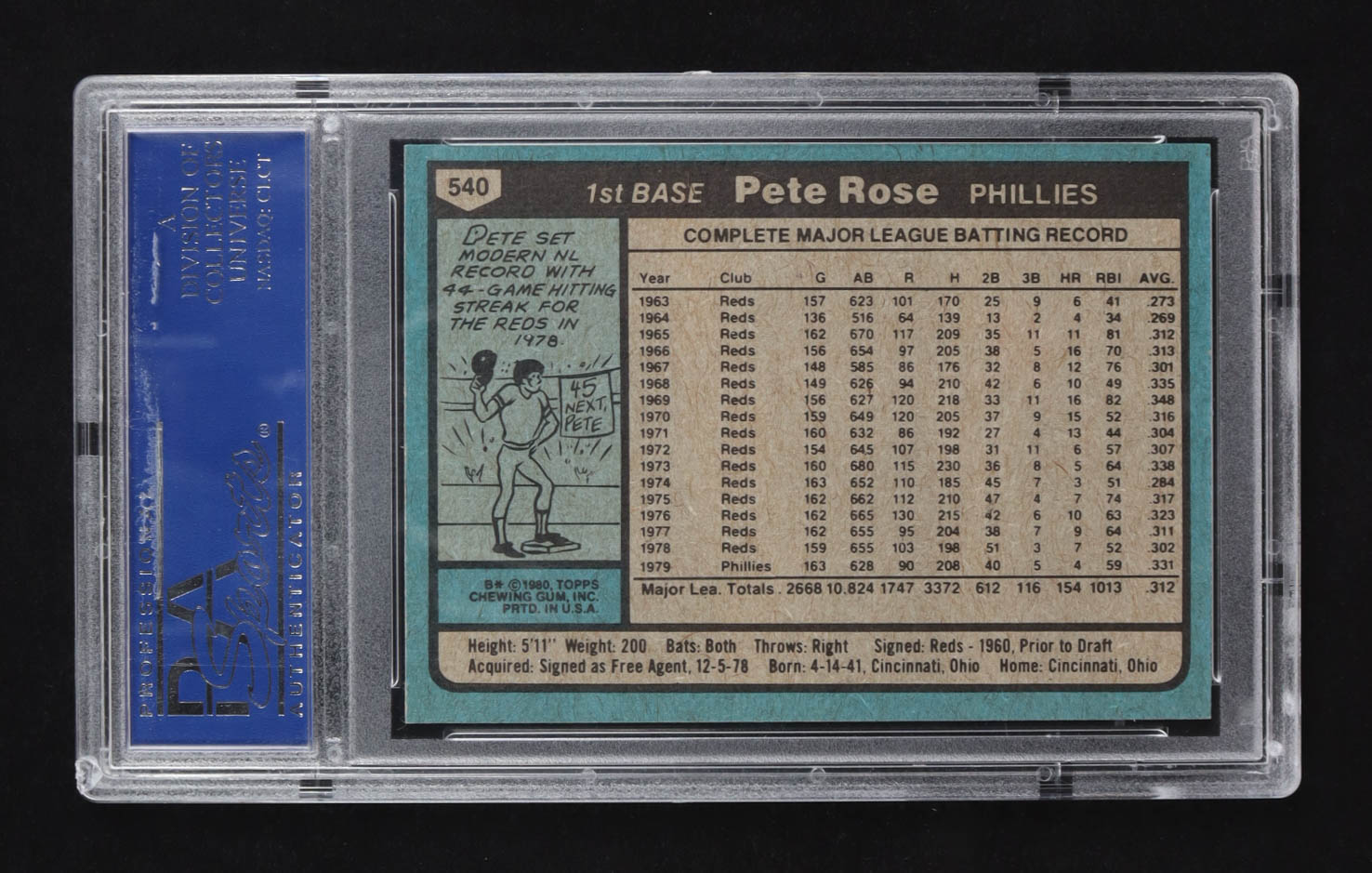 Pete Rose 1980 Topps #540 (PSA 9)
