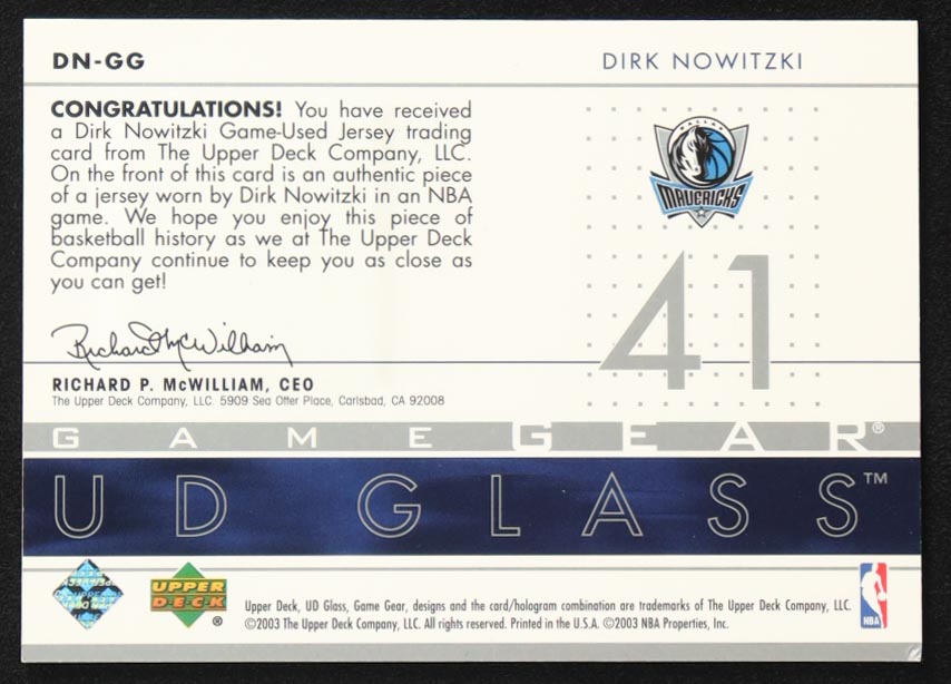 Dirk Nowitzki 2002-03 UD Glass Game Gear #DNGG