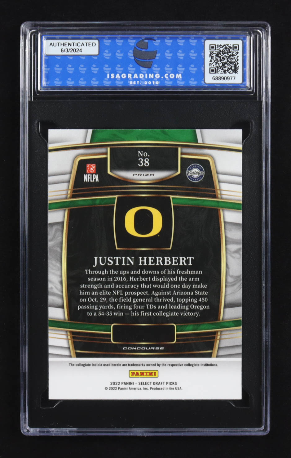 Justin Herbert 2022 Select Draft Picks Prizms Red Lazer #38 (ISA 9)