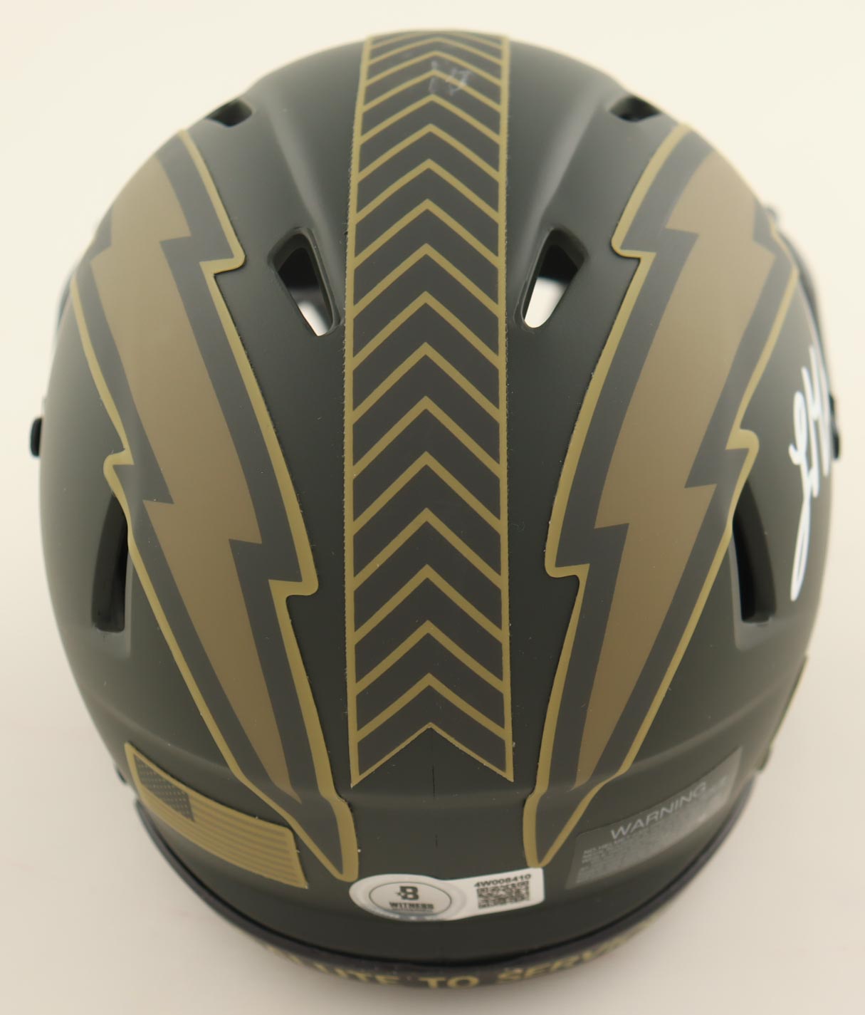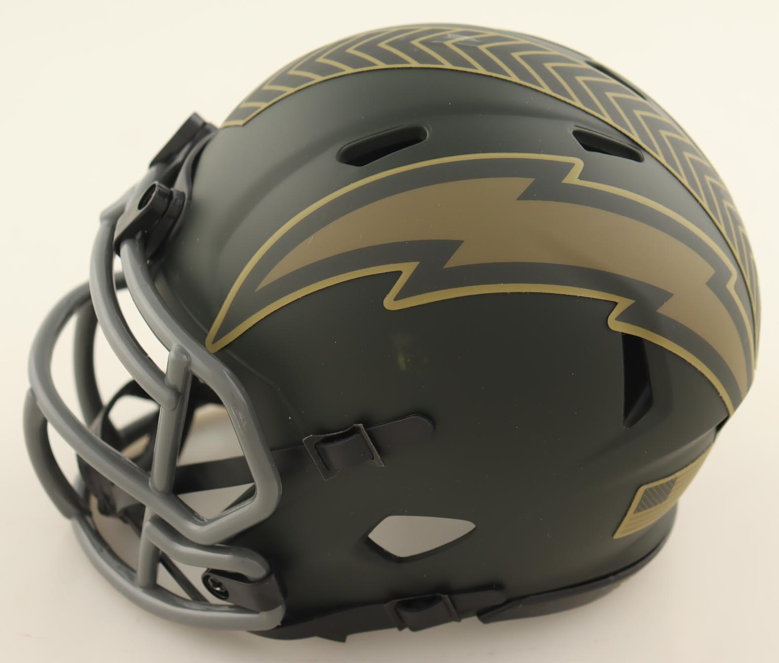 Riddell Los Angeles Chargers Salute To Service Alternate Speed Mini Helmet. Hand-signed by Ladd McConkey.